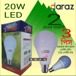 20W 2000lm B22 (Pin Type) Sanjida Star Bright LED Bulb 3 pice hol sel