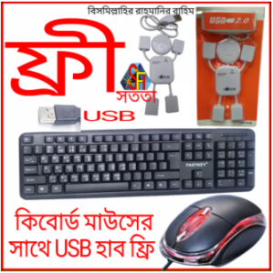 A.tech/ hp/del/ Mini USB Wired Keyboard Keyboard with mouse free লেপটপ ডেক্সটপ এন্ডোয়েট মোবাইলের জন্য