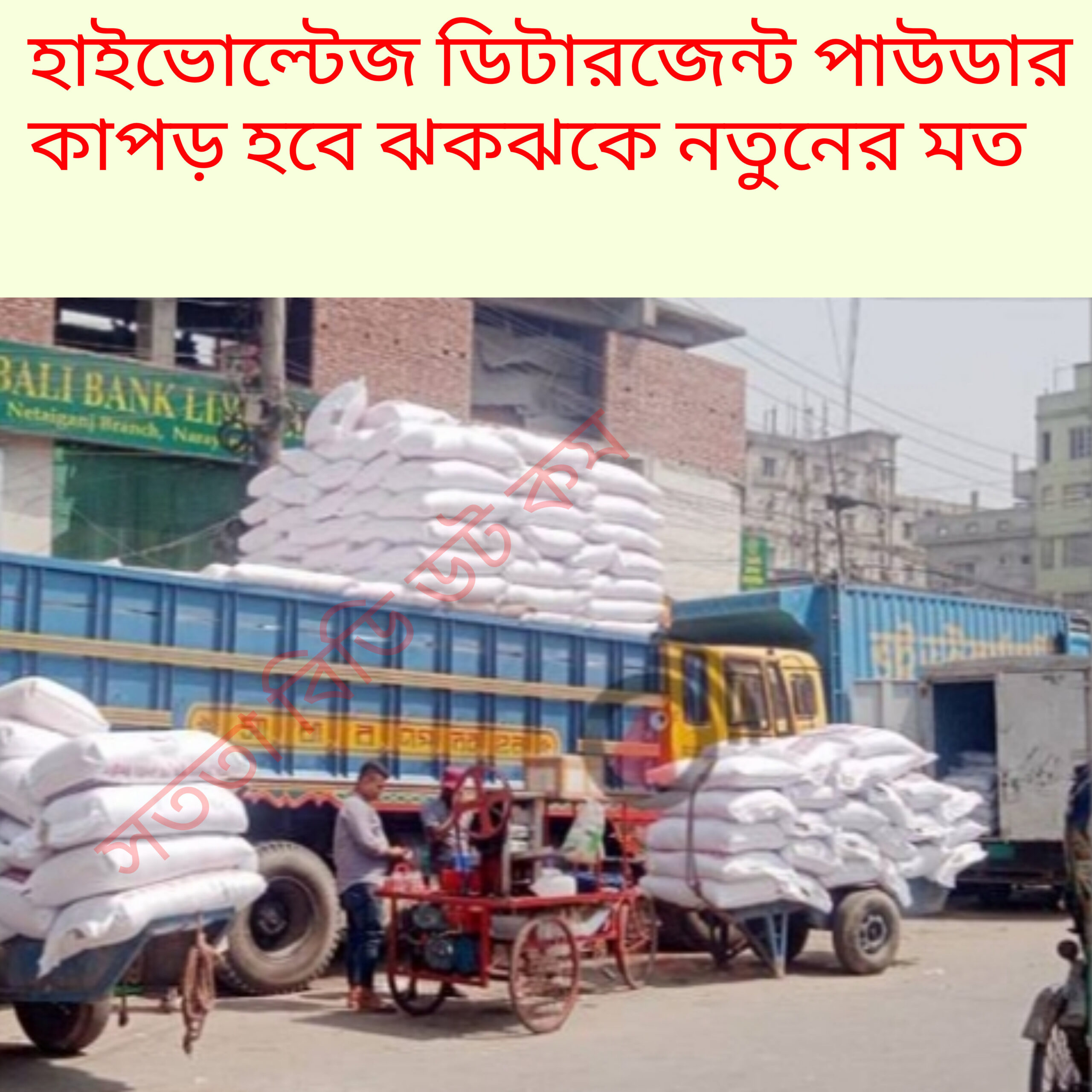 এতে কাপড় থেকে তৈলাক্ত পদার্থ বা ময়লা মুক্ত হয় এবং কাপড় পরিষ্কার হয় । এর সাথে নাড়াচাড়া করলে বা ঘষা দিলে তেল ও ময়লা আরো সহজে কাপড় থেকে পৃথক হয়ে যায়। ফলে কাপড় ও পরিষ্কার হয়ে যায় ।  হাইভোল্টেজ  ডিটারজেন্ট হল লবণ জাতীয় জৈব ও অজৈব পদার্থের মিশ্রণ । হাইভোল্টেজ  ডিটারজেন্টের গঠনও অনেকটা সাবানের মতো। এর একটি অংশ পানির প্রতি আকৃষ্ট হয়, অন্যটি হয় না। কয়লা ও পেট্রোলিয়ামের হাইড্রোকার্বন থেকে তৈরি হয়। হাইভোল্টেজ  ওয়াশিং পাউডার গুলোতে প্রায় ১০ থেকে ৩০ শতাংশ পর্যন্ত ডিটারজেন্ট  থাকে। এতে সোডিয়াম সালফেট ও সোডিয়াম সিলিকেট মেশানো হয় বলে হাইভোল্টেজ  ডিটারজেন্ট শুষ্ক থাকে।